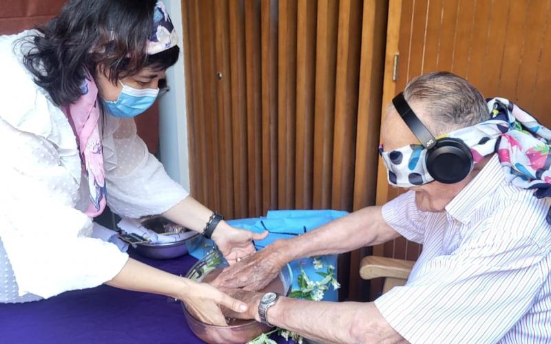 El jueves, sin duda, vivimos el día más especial. Fue un verdadero placer ver a jóvenes, mayores y niños participando y disfrutando de todas las actividades preparadas en la feria de los sentidos; la vista, el oído, el olfato, el gusto, el tacto y el sentido común tuvieron todo el protagonismo a través del taller de realidad virtual, sonidos ocultos, taller de ambientadores, nos refrescamos con mojitos, taller de cerámica y el taller del sexto sentido. Acabamos la tarde de la manera que más nos gusta, residentes, familiares y colaboradores bailando y disfrutando de la música de ayer, hoy y siempre.