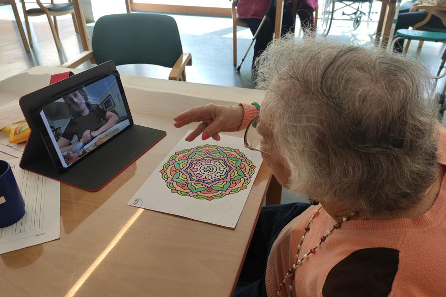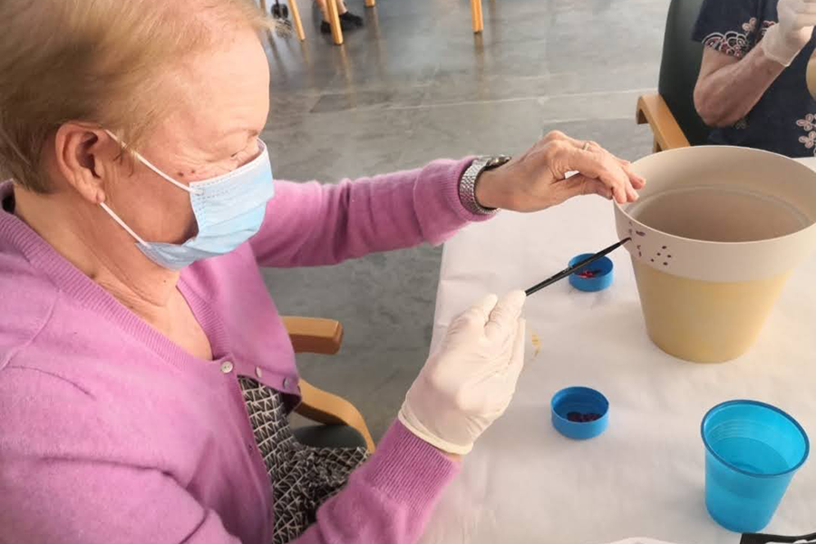 Sin embargo, el aislamiento del exterior y el cuidado de la salud física no eran suficientes. La salud emocional era igual de importante. Por ello, además de abrir canales de comunicación con las familias mediante videollamadas personalizadas y reuniones online, multiplicamos las actividades dentro del Centro para que las personas residentes se mantuvieran activos, ocupados y conectados entre sí. Fue todo un reto organizar juegos, talleres y dinámicas respetando la distancia de seguridad… pero era fundamental que no perdieran la interacción social, tan necesaria para ellos.
