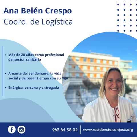 A partir de ahora, Ana será la responsable de nuestro equipo de servicios generales, que engloba limpieza, lavandería y cocina. Su labor tendrá como propósito principal coordinar y optimizar estos servicios para garantizar el máximo bienestar y confort de nuestros residentes, así como un entorno seguro, higiénico y acogedor para todos.