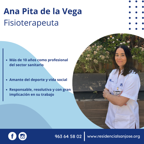 Damos la bienvenida a Ana Pita de la Vega, quien se incorpora como nueva fisioterapeuta en el marco de la ampliación de nuestro equipo. Esta incorporación supone una excelente oportunidad para seguir mejorando la atención y el bienestar de nuestros residentes.
